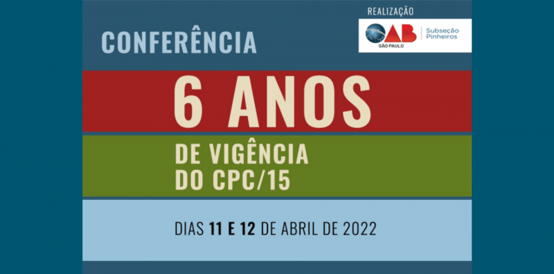 Estão abertas as inscrições para a Conferência “6 Anos de Vigência do CPC/15”. O evento acontecerá nos dias 11 e 12 de abril das 8h30 às 12h10, por meio de transmissão online via Sympla Streaming.